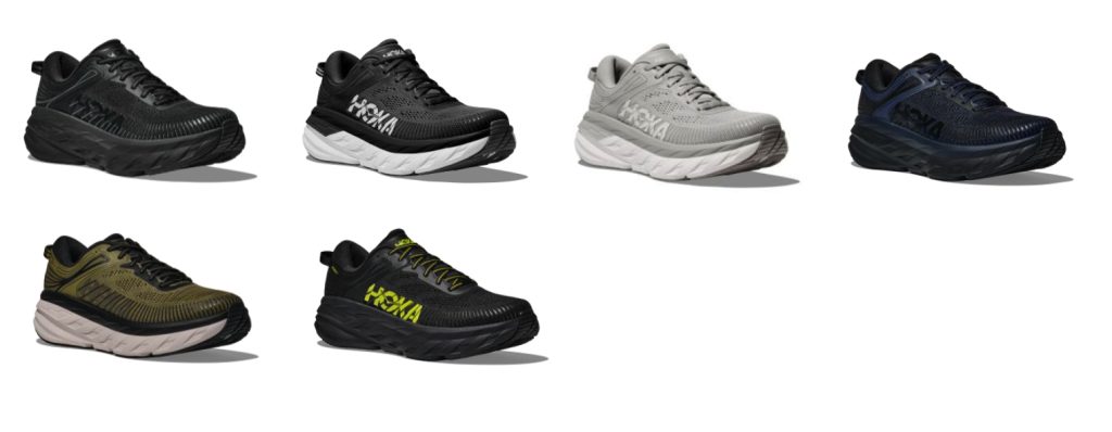 BLACK / BLACK、BLACK / WHITE、HARBOR MIST / WHITE、VARSITY NAVY / BLACK、WILD RYE / BLACK、BLACK / HOKA CITRUS (4/1発売)