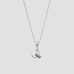 月にクラウンをあしらった「SWEET MOON」は、静かな存在感を意識したデザイン。背面には、欠けた石碑の内側に差し込む光をイメージしたクリアストーンを用い、正面とは異なる表情を持たせている。やわらかな曲線と抑制された装飾が、スタイルを選ばず取り入れやすい一本。